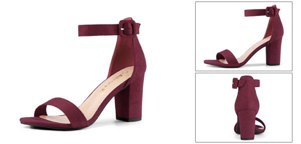 ソウテン アンクルストラップ サンダル バックル ハイヒール チャンキーヒール レディース ブルゴーニュ 26.0 cm