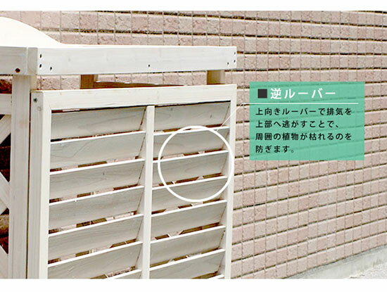 省エネ効果が得られ、植物が枯れない逆ルーバー仕様の屋外エアコンカバー! 無機質だった室外機周辺をおしゃれに見せることができる木製室外機カバーです。