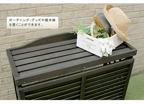木製室外機カバーの上部にはガーデニンググッズや植木鉢を置くことができ、ナチュラルな風合いは、どんな場所にもなじむので、室外機周辺をおしゃれな雰囲気にしてくれます。
