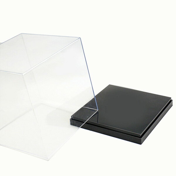 色 ケース:クリアー 台座:ブラック 材質 ケース・台座:スチロール サイズ(外寸) 244×244×261Hmm 内側サイズ(有効寸法) 224×224×226Hmm 自社(蝶プラ工業)製造直販です♪